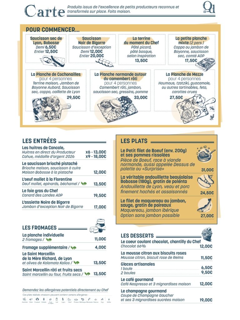 en fonction des produits de saison et des inspirations du Chef.